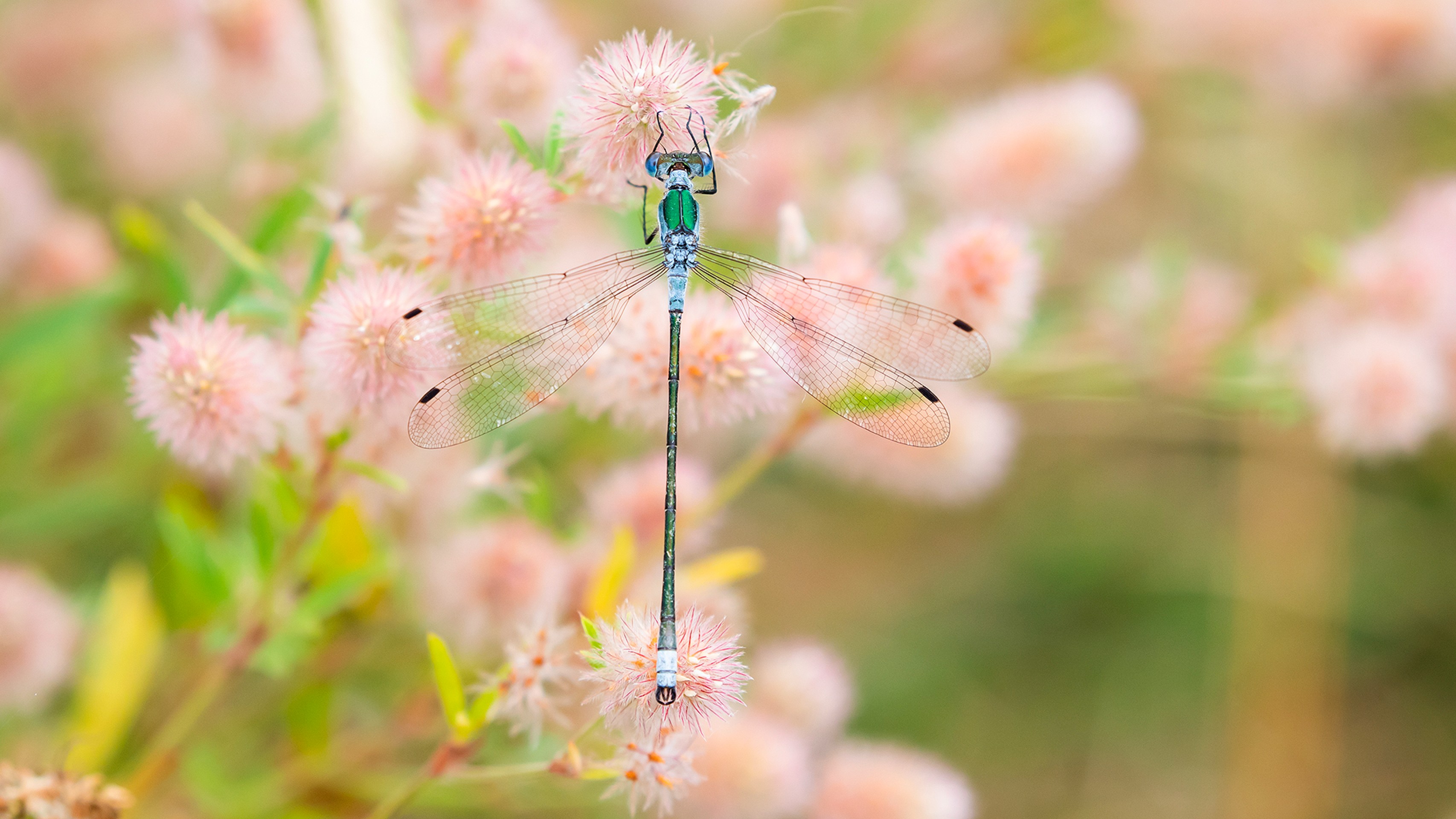 An Emerald Damselfly on hare’s-foot clover taken at Intake Wood in Clipstone.